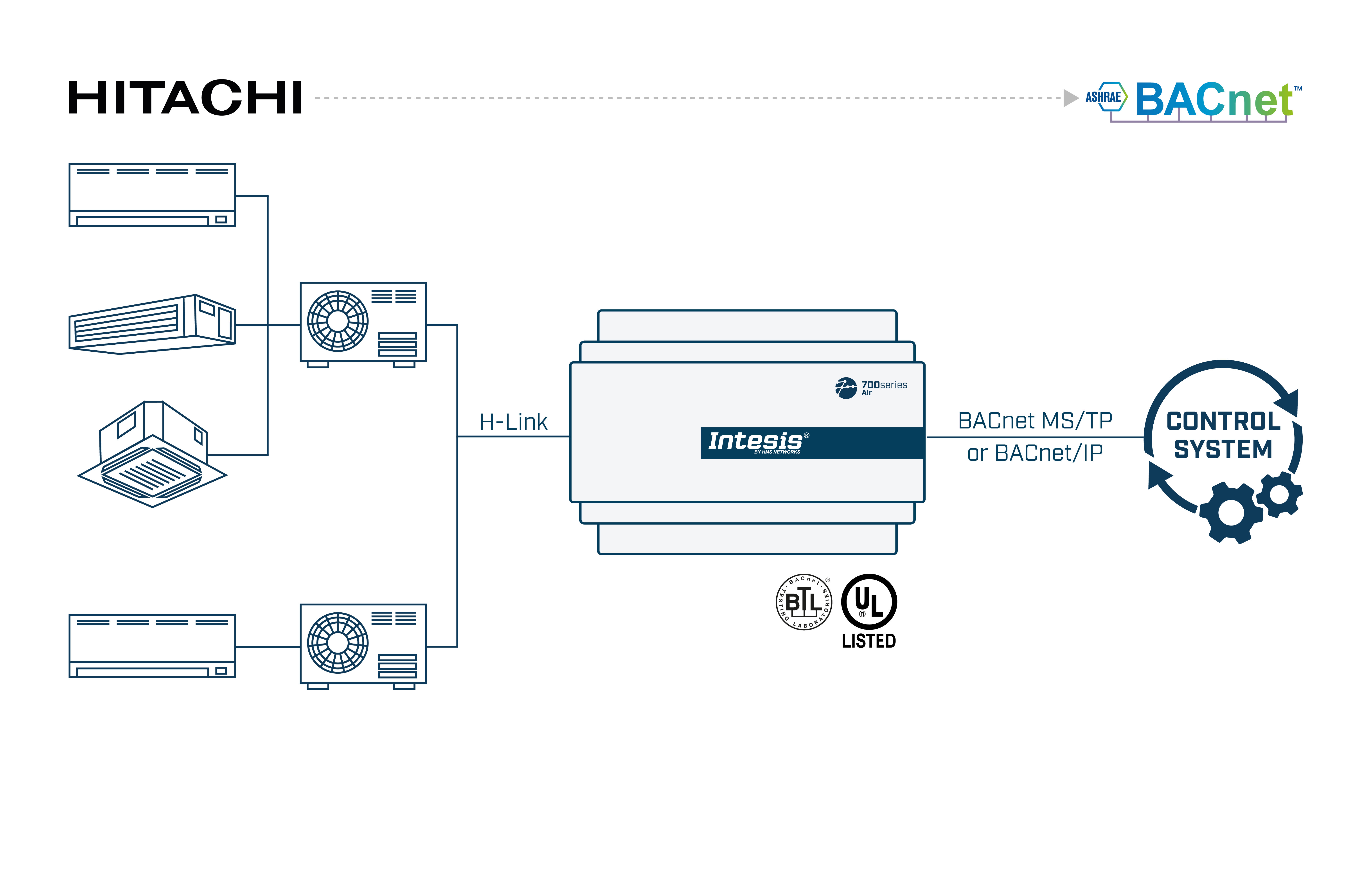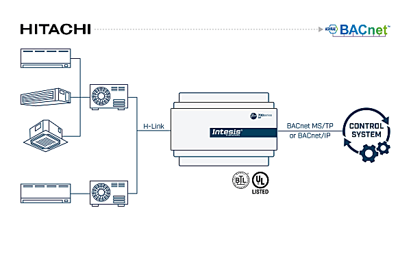 Hitachi 应用程序经过专门设计,允许从 BMS、SCADA、PLC 或任何其他用作 BACnet/IP 服务器或 BACnet MS/TP 客户端的设备对 Hitachi VRF 系统进行双向控制和监控。 该解决方案允许从单个界面集成多达 4 个室内机。