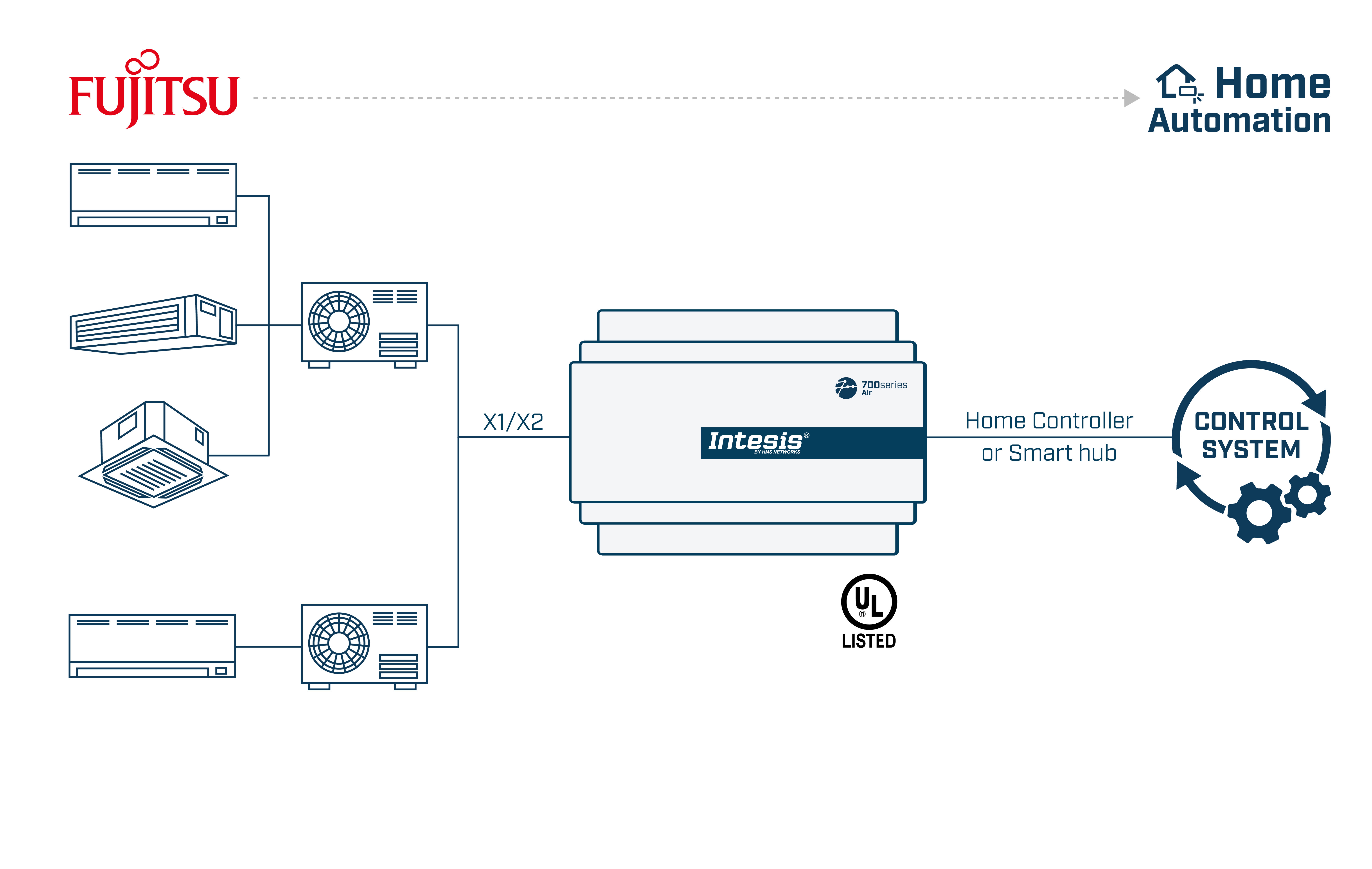 富士通应用程序经过专门设计,允许从家庭自动化系统对富士通VRF系统进行双向控制和监控。 该解决方案允许从单个接口集成多达 64 台室内机。