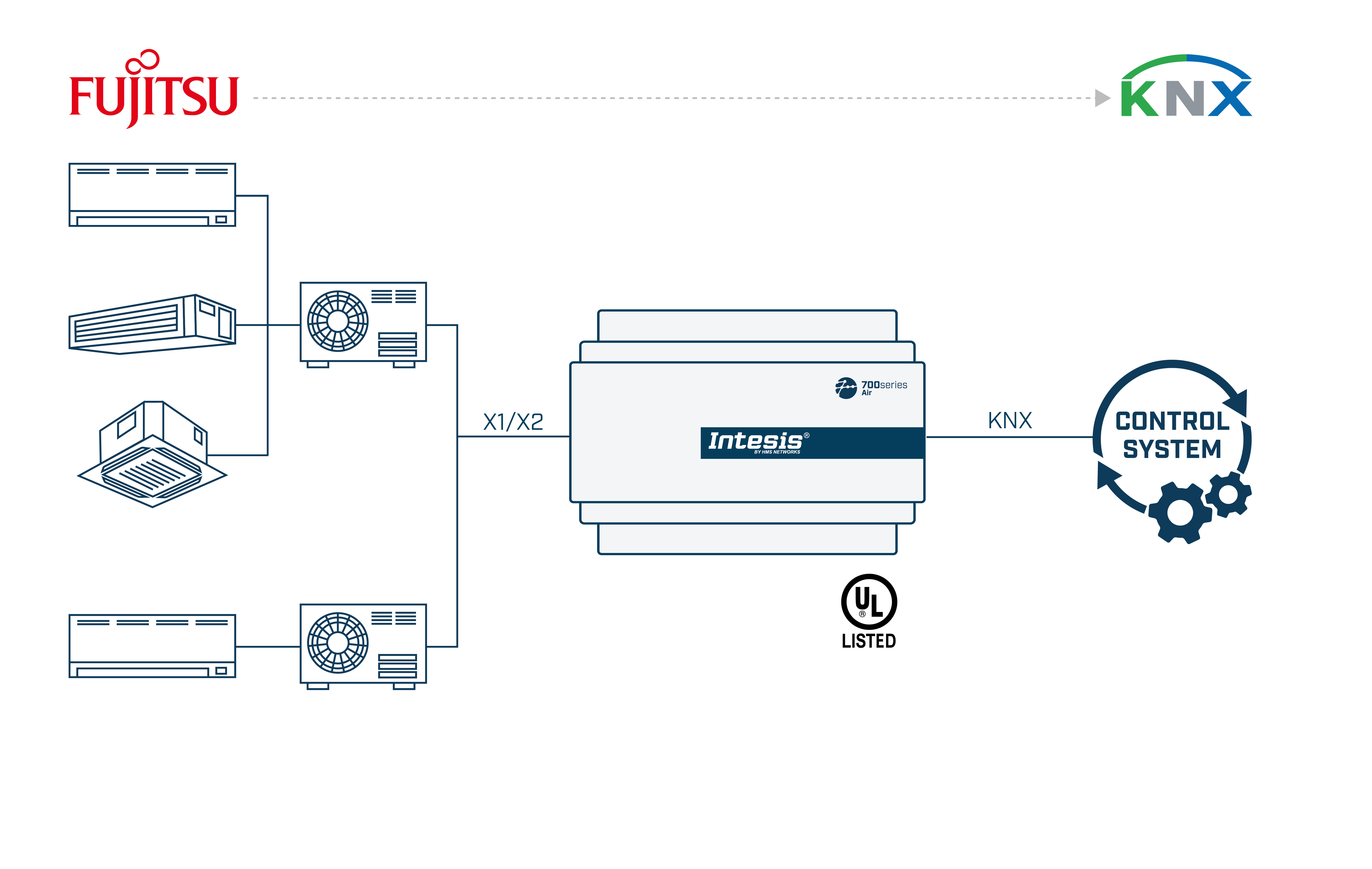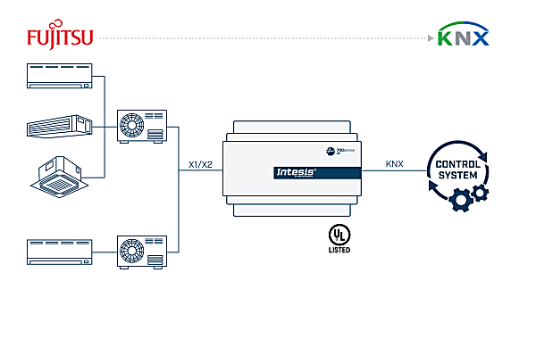 富士通应用程序经过专门设计,允许从KNX装置对富士通VRF系统进行双向控制和监控。 该解决方案允许从单个界面集成多达 4 个室内机。