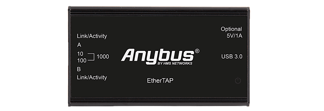 我们通过 Anybus EtherTAP 1G 网络抓包工具抓取了 EtherCAT 从站模块与欧姆龙 PLC 之间的通信报文。EtherTAP 是通过采样复制流经该模块 A/B 口之间的网络报文电信号并传输到 WireShark 报文分析软件中,不参与也不影响实际的通信网络,可以抓取十分干净原始的报文,方便诊断分析。
